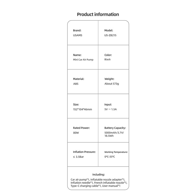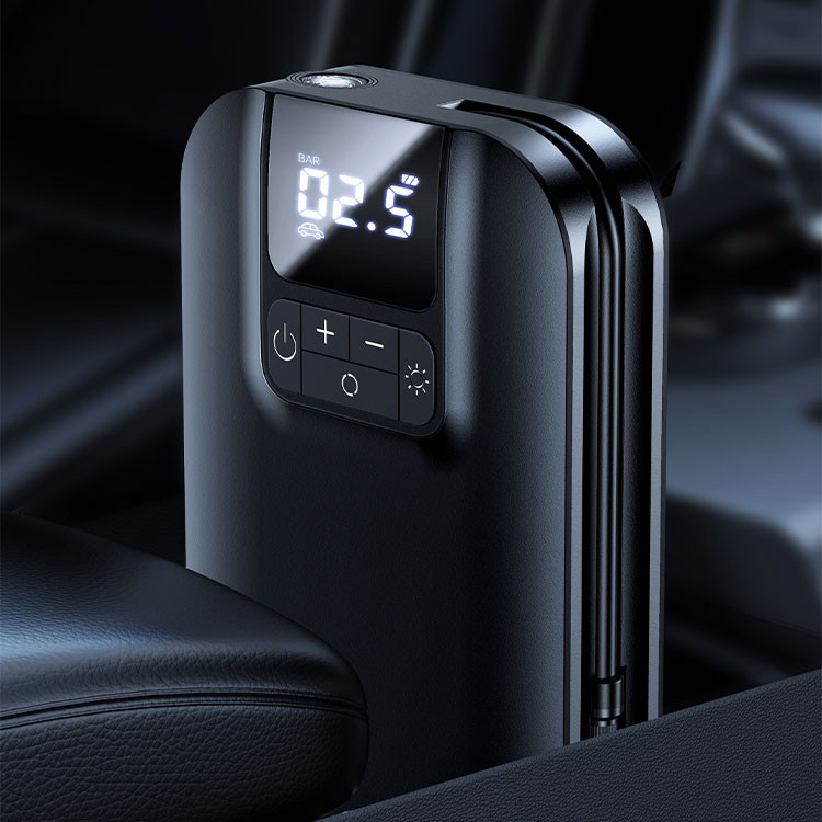 منبع تغذیه این پمپ باد یک باتری لیتیومی کم مصرف 5000 میلی آمپر است که با اتصال به فندکی ماشین می تواند شارژ شود و به صورت اتوماتیک هنگام افزایش توان بیش از حد، جریان برق را قطع می کند و از خروجی فندکی ماشین محافظت می کند.